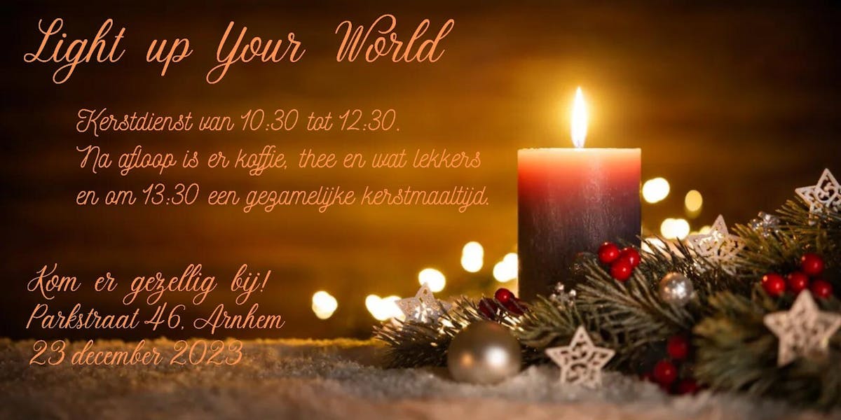 Met vreugde nodigen wij jullie uit voor onze feestelijke kerstdienst op zaterdag 23 december. Samen willen we de betekenis van kerst vieren en ons laten inspireren door het thema van – “Verlicht jouw wereld” (Light up your world).