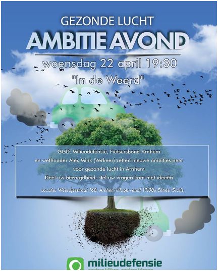 Onze wijk grenst aan een van de vieste straten van de stad: de Eusebiusbuitensingel/ Velperbuitensingel. Op woensdag 22 april organiseert Milieudefensie Arnhem een debatavond over gezonde lucht in de 'In de Weerd', in de binnenstad (vlakbij de Rozet). Jullie zijn van harte welkom om aan te schuiven en met wethouder Alex Mink, de GGD, de fietsersbond en alle andere aanwezigen te praten over de luchtkwaliteit in Arnhem. Wat zijn de problemen en hoe kunnen we de uitstoot door het verkeer omlaag krijgen? Milieudefensie meet daarvoor op 2 punten in de stad het stikstofdioxide-gehalte in de lucht. Op 22 april worden de eerste resultaten daarvan bekend gemaakt.