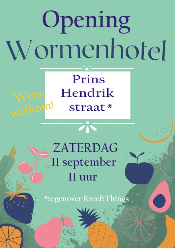 Aanstaande zaterdag neemt een groepje wormen hun intrek in het wormenhotel in de Prins Hendrikstraat. Daar gaan ze groenteafval van en voor omwonenden opeten en verteren. Dit resulteert in een mooie compost die je weer in je tuin of plantenbakken kunt gebruiken. Hoe circulair is dat!