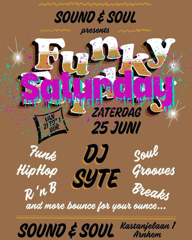 Aanstaande zaterdag is er weer een nieuwe editie van Funky Friday(maar dan op zaterdag🤪)! Vanaf 9 uur schuiven wij de tafels aan de kant en maken wij plaats voor jullie te gekke dans moves💃🏻 Dj Syte draait alleen de beste hits dus dit mag je niet missen!