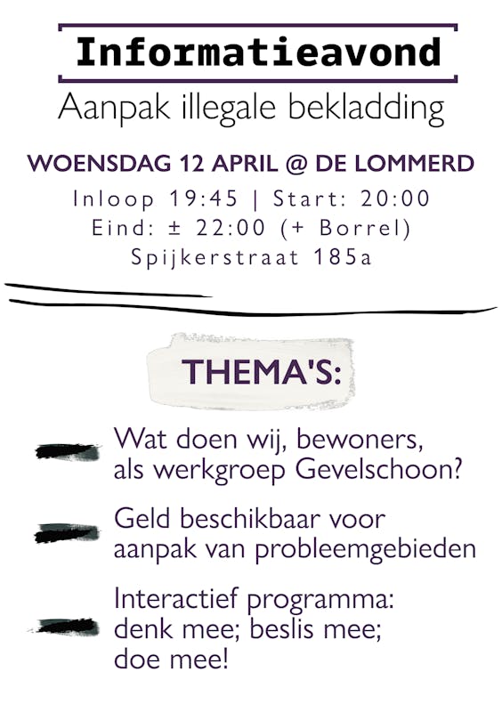 Aanwezigen op deze avond kunnen meedenken over o.a. welke nieuwe hotspots aangepakt gaan worden, en op welke manier dit mogelijk is