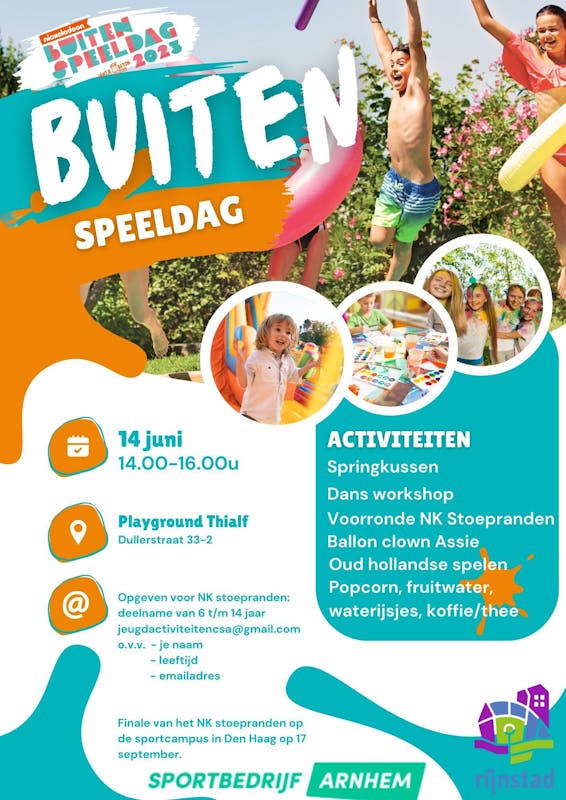 Op 14 juni van 14.00-16.00u zijn er allerlei leuke activiteiten georganiseerd. Zo kun je een workshop dans volgen, loopt Clown Assie rond om ballonfiguren te maken, kun je geschminkt worden en nog meer!. Wat we ook hebben is de voorronde van het NK stoepranden! Als je je als winnaar uit de bus komt is de finale op 17 september op d sportcampus in Den Haag.