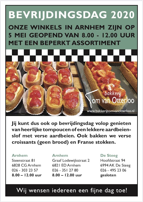 Vanwege het succes van Koningsdag zijn we ook Bevrijdingsdag, dinsdag 5 mei, geopend met onze Arnhems winkels.