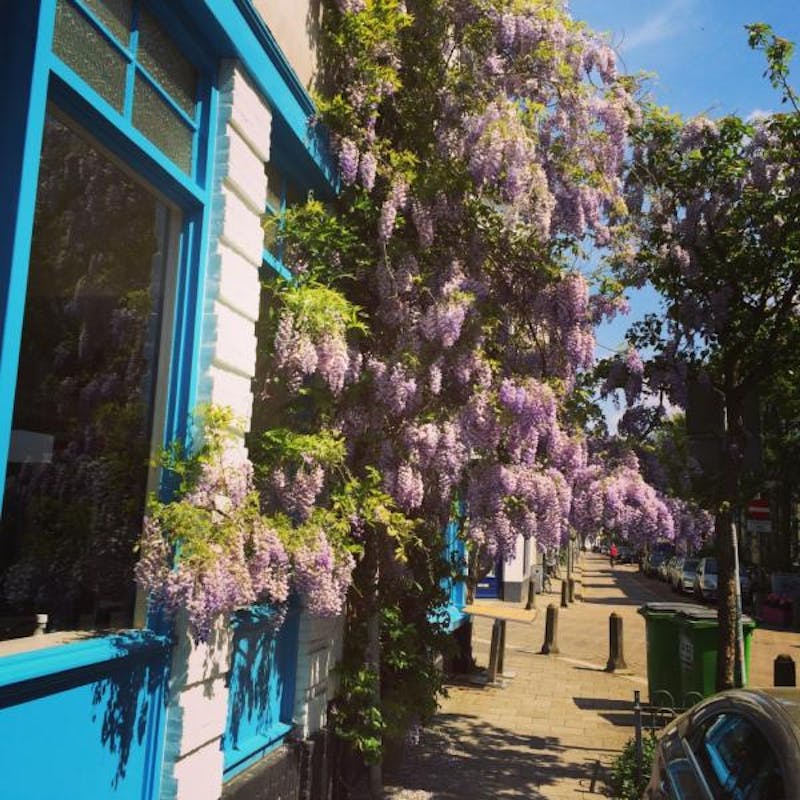 De Blauweregen van de Blauwe Hoek, vol in bloei.