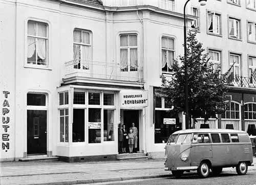 Net als andere zaken in de buurt werd de meubelzaak genoemd naar het nieuwe Rembrandthotel. In 1957 werd dochter Birgit geboren. Kennelijk gingen de zaken goed, want in de jaren daarna werd het houten magazijn opnieuw in steen opgetrokken en kreeg het pand aan de achterkant een aanbouw.