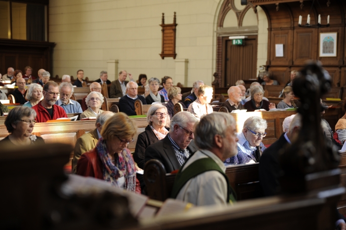 Kun je ons over de geschiedenis van jullie kerk vertellen? ‘De lutherse traditie komt uit Duitsland en Scandinavië. In de steden had je vroeger veel lutheranen. In de achttiende eeuw was twintig procent van Amsterdam luthers. Sociaal was het de bovenlaag en hun personeel, de middenklasse ontbrak. Diversiteit is altijd eigen geweest aan de lutherse traditie in Nederland, een rijkdom!’ Waarom begon Luther zijn eigen beweging? ‘Luther is een exponent van een roep om hervormingen, de reformatie. Die duurde al eeuwenlang en kreeg in 1517 zijn beslag. De kerk leefde te veel in weelde. Is armoede voor een kerk beter? ‘Het evangelie hoort in de marge van de samenleving. Christus zelf had nooit een stuiver op zak. Zodra een religie geld en macht krijgt corrumpeert zij.’ Welke ontwikkeling heeft de lutherse kerk doorgemaakt? ‘Wij zijn nooit onderdeel van een zuil geweest. Sinds 2004 maken wij landelijk deel uit van de protestantse kerk. Ik betreur dat. Ik vind het calvinisme goed en braaf, maar het is niet onze meest vanzelfsprekende partner. We hadden beter met een evangelische broedergemeente, de anglicanen of de oud-katholieken kunnen samengaan (inmiddels is bekend dat de Arnhemse lutherse kerk samengaat met de oud-katholieke parochie in de wijk Molenbeke, red.). Er zijn veel redenen waarom ik nu zo in de rooms-katholieke kerk zou instappen. De scheidslijnen van vroeger spelen niet meer. Wel nieuwe, zoals de pauselijke onfeilbaarheid en gelijkberechtiging van mannen en vrouwen en hetero’s en homo’s. In de basis zijn de lutherse en de katholieke traditie gelijk. Maar onze mentaliteit is wel calvinistischer geworden.’ In welk opzicht? ‘In de liturgie en gebruiken.