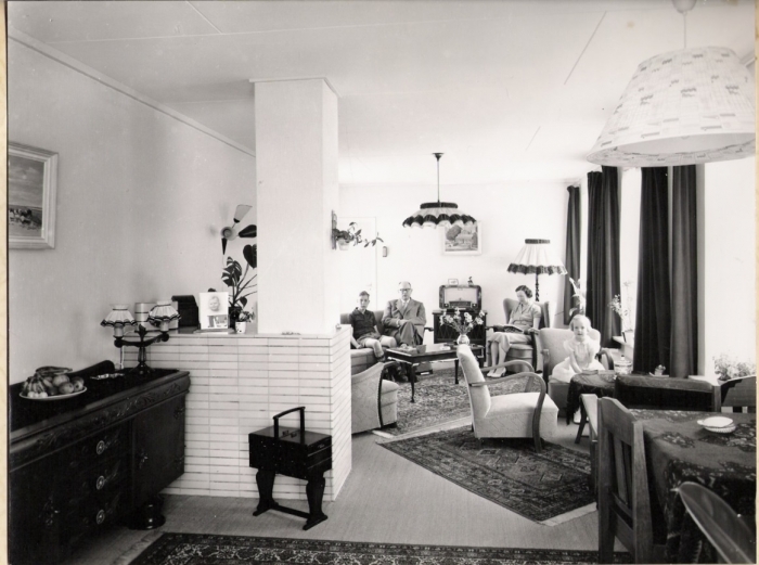 De familie Rusch in hun splinternieuwe woning, 1956