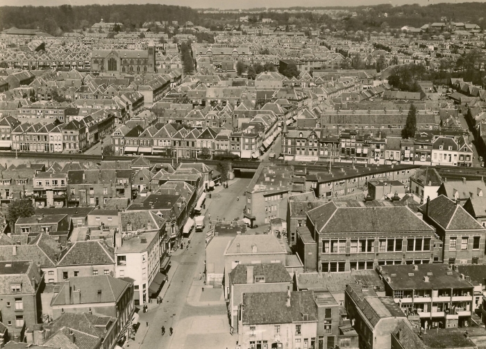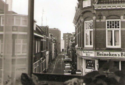 Uitzicht van de familie Rusch op de Patersstraat, met rechts het biljartcafé Nicosti van biljartkampioen Nico Stikkelman.