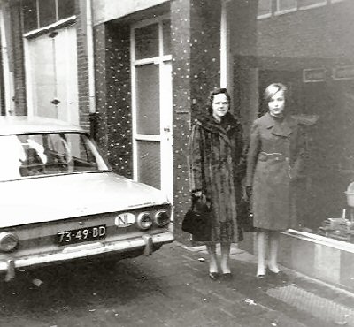 Trudi met haar moeder bij de voordeur aan de Oude Klarendalseweg