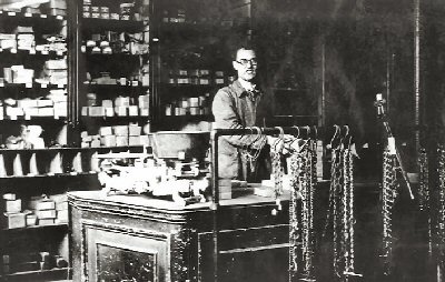 Simon Rusch sr. in de ijzerwarenwinkel van Leijgraaf & Co op Hommelstraat 57
