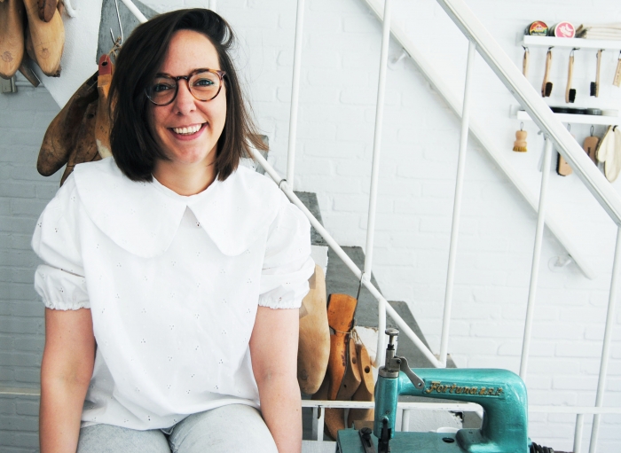 Onderweg naar de afspraak met schoenontwerper Lise Brunt was het koud, nat en somber weer. Bij binnenkomst in de werkplaats op de begane grond straalt de warmte me tegemoet. Lise is een vrolijke en spontane meid die meteen en makkelijk contact maakt; ”dat vind ik ook erg belangrijk dat mensen zich hier op hun gemak voelen en zichzelf kunnen zijn. Zeker bij de individuele schoenenworkshop van 5 x 8 uur werk je heel intensief en éen op éen met iemand samen voordat ze met hun zelf handgemaakte schoenen -altijd blij- de deur uitgaan”. Dat is dan ook precies de reden dat ze na haar opleiding aan ArtEZ en de opleiding ambachtelijk schoenmaken én nadat ze gewerkt heeft bij H&M in Stockholm, gekozen heeft voor het geven van workshops. “Alleen maar achter de pc zitten is niets voor mij, juist het samen met andere mensen iets maken en begeleiden in hun creatieve proces geeft mij veel voldoening en energie”