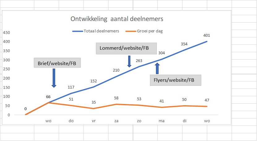 Er hebben 401 wijkbewoners de peiling ingevuld, verdeeld over de dagen zag dat er zo uit: