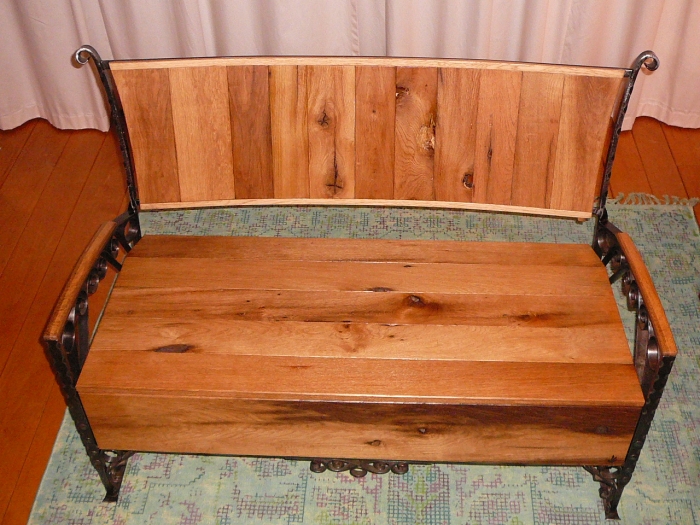 Twee jonge kunstenaars uit de regio, de een sterk met de toepassing van ijzer (smeedwerk) en de andere met oud hout. De kunstenaars hebben alleen oud materiaal gebruikt, waaronder ruim 80 jaar oude eiken planken met een bijzondere tekening. Als geheel een mooie circulaire toepassing van materiaal en arbeid. Kortom een zitbank van alure en met een geschiedenis. Een goed voorbeeld van "naast" de container in het Spijkerkwartier naar een hoogwaardig eindproduct.