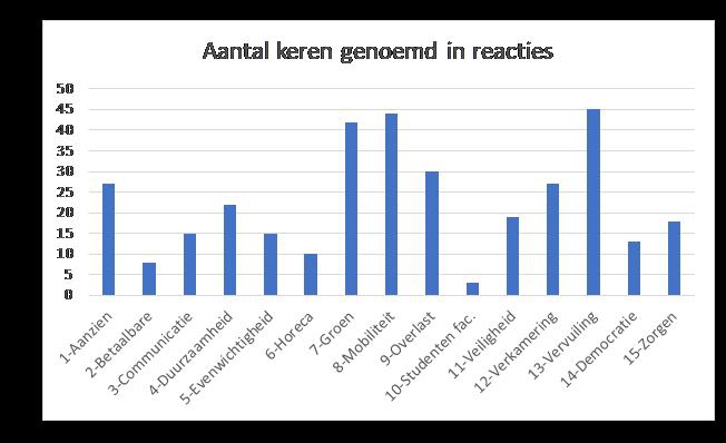In onderstaande grafiek zie je het aantal keren dat een onderwerp in de reactie genoemd werd.