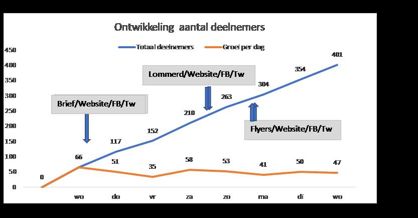 Deze continue stroom van berichten heeft er, volgens ons, voor gezorgd dat we over de peilperiode een gestage groei van deelnemers hebben gerealiseerd.