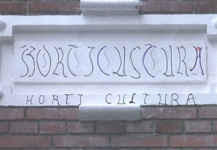 Het eerste van deze drie adressen is op de locatie van de huidige stripstudio. De familie Besseling had daar in 1915 een bloemisterij, maar het is wel mogelijk dat het ooit - vermoedelijk sinds het bouwjaar 1891 - als een soort oranjerie is begonnen. Daar konden dan de potplanten overwinteren van de huizen uit de buurt. De gevelsteen verwijst daar ook naar. In de gevelsteen staat, in de sierlijk geschreven letters, een tekst verborgen met een betekenis. Aanvankelijk dacht men dat er "Montesori" stond, vanwege het bijzonder onderwijs wat er werd gegeven, maar het blijkt dus anders te zijn.